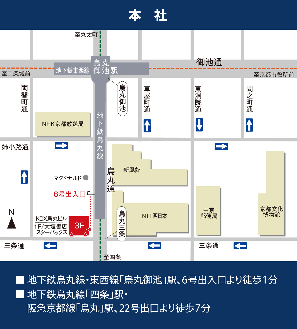 | 本社 | 〒604-8166 京都市中京区三条通烏丸西入御倉町85番地1 MAP