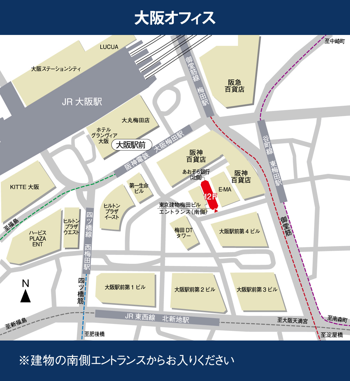 | 大阪オフィス | 〒530-0001 大阪市北区梅田一丁目12番12号 東京建物梅田ビル12階 MAP TEL 06-6201-5005 |